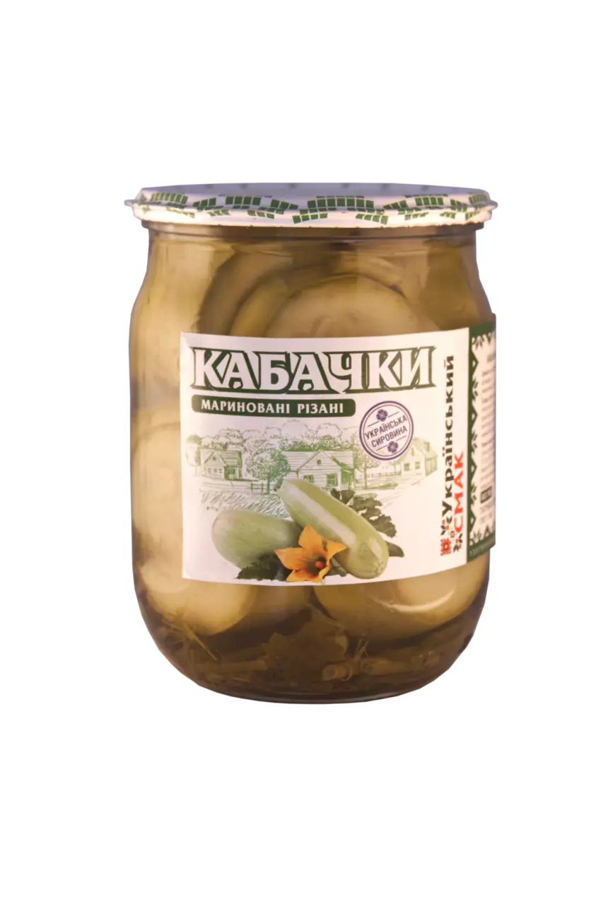 Кабачки маринованные резанные в стеклянной банке 500г